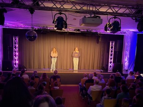 In diesem Jahr wurde der Tag der offenen Tür durch eine Eröffnungsfeier gemeinsam in der Aula begonnen. Hier führten Leni und Lena aus unserer SV durch ein buntes Rahmenprogramm, das u.a. mehrere musikalische Beiträge der Schülerband, sowie von Nele und Victoria aus der sechsten Klassen und einen Auftritt der Hiphop – AG beinhaltete. Unser Schüler*innen des Technikteams sorgten für einen mit Ton und Licht sowie Bühnenumbau für einen reibungslosen Ablauf.