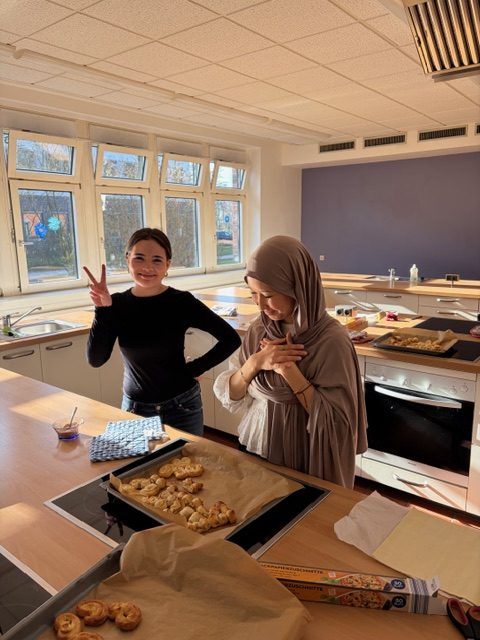 Die Lehrküche wurde zu einer Backstation, in der unter Anleitung einiger Schüler*innen der RSAK leckere kleine Zimtschnecken hergestellt und frisch im Ofen aufgebacken wurden.