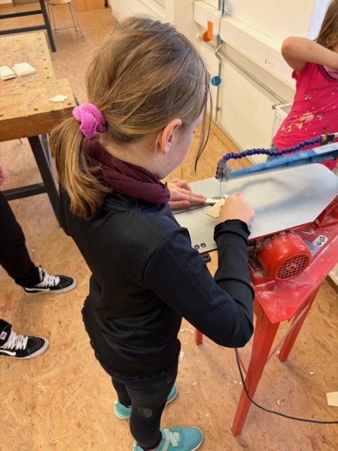 Hier wurden Schlüsselanhänger oder Holzschilder angefertigt, die die kleinen (und großen) Künstler nach dem Segen, Pfeilen, Bohren und Bemalen mit nach Hause nehmen durften.